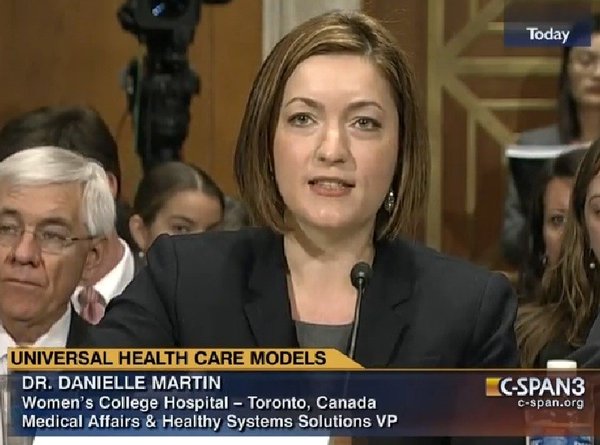 By far the high point of the morning was an exchange between Sen. Richard Burr (R-N.C.) and Danielle Martin, a physician and health policy professor from Toronto. The exchange, in which Martin bats down the myths and misunderstandings about the Canadian system that Burr throws at her, starts at about the 1:08:15 mark.